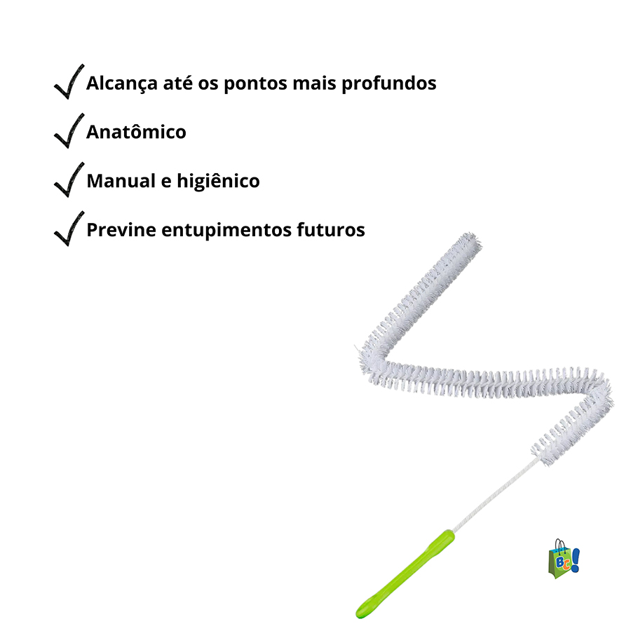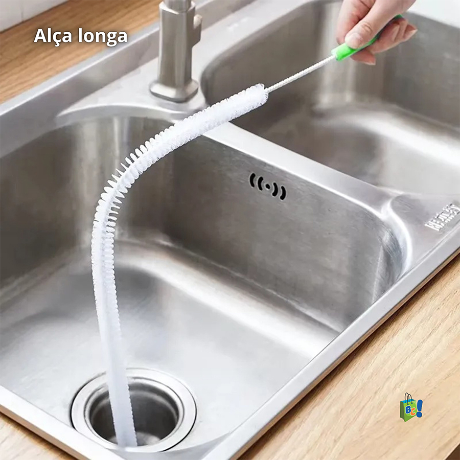 Com 70cm de comprimento, alça anatômica e cerdas especiais, essa ferramenta consegue alcançar até os pontos mais profundos dos canos e ralos, removendo sujeiras acumuladas e prevenindo entupimentos futuros. É a solução simples, sustentável e econômica que toda casa precisa ter.
