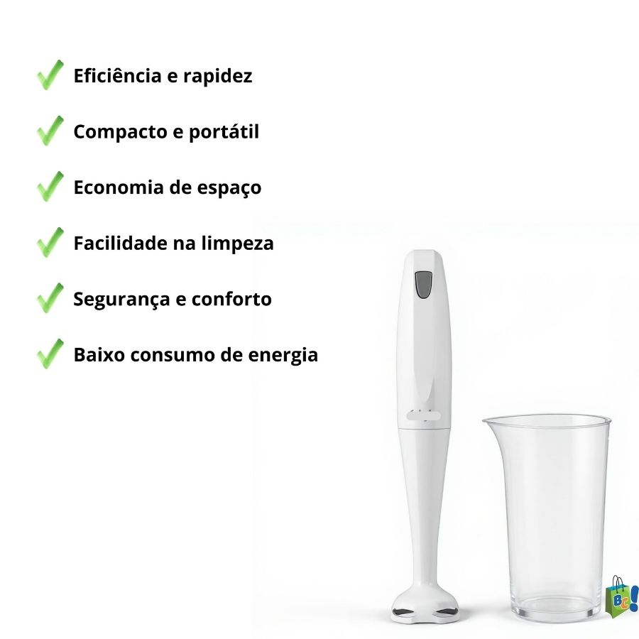 Mixer Misturador de Mão FIX 300W 127V com Copo 500ml Portátil Compacto Ergonômico Lâminas Inox para Shakes, Sopas, Molhos e Papinhas